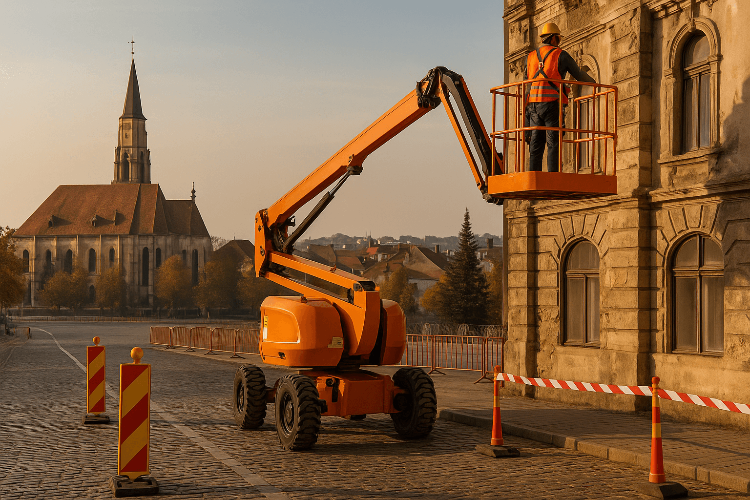 Când îți ridici oamenii la zece, douăzeci sau treizeci de metri, nu mai lucrezi doar cu un utilaj simpatic care te ajută la fațade. Lucrezi cu un angajament, cu promisiunea că fiecare se întoarce teafăr la finalul zilei. În Cluj, ca peste tot în România, legea nu este o piedică pusă în drum, ci un fel de plasă de siguranță.