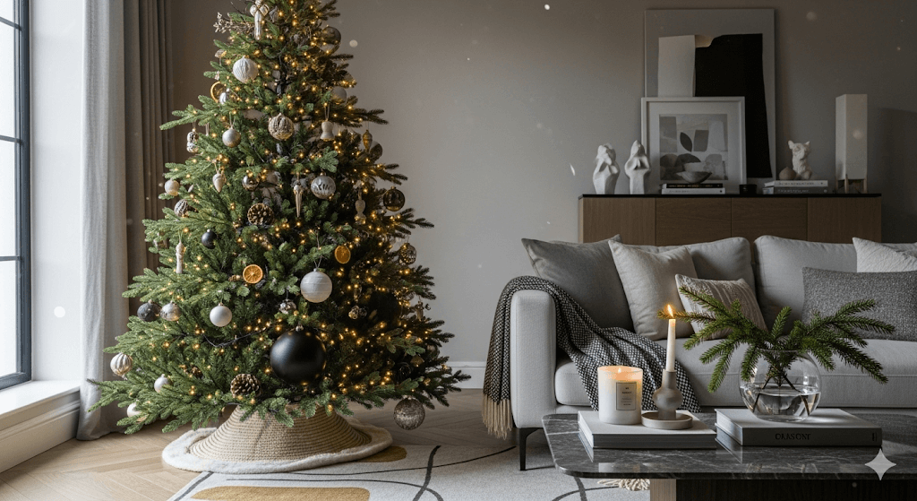 Mi-am dat seama că designerii au început să se gândească la brad ca la o piesă de mobilier care vine și pleacă, nu doar ca la o decorațiune. Asta înseamnă că trebuie să se potrivească cu restul camerei, să meargă cu culorile, să respecte stilul casei.